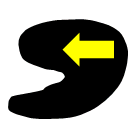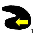 In this case, the arrangement of shapes does not move outward from the center of the spiral. Looking at the shapes on the bottom, you can see a row developing from left to right, with each shape rotating by a quarter turn (90 degrees) compared to the previous shape. Thus, the first shape has its "head" pointing upwards, the second shape has its "head" pointing to the right, and the next shape in the series should have its "head" pointing downwards. Applying this conclusion to the top row leads us to the solution.